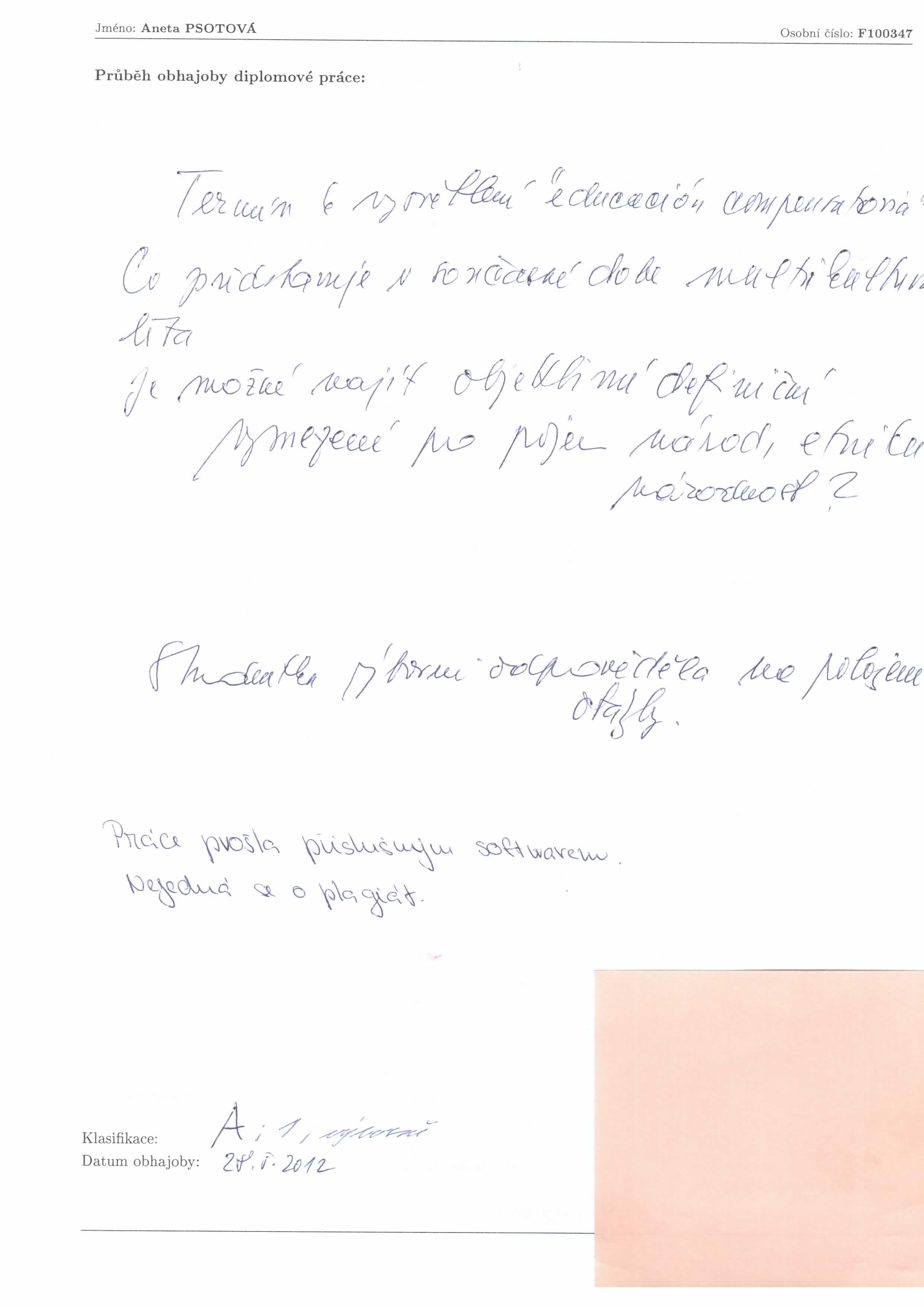 Kvalifikační práce Staženo Velikost datum zpřístupnění 00174971-709868656.pdf 64 2.4 MB 10.04.2012 Posudek Typ posudku 00174971-ved-421144491.doc Posudek vedoucího 00174971-opon-674893532.doc Posudek oponenta Průběh obhajoby datum zadání datum odevzdání datum obhajoby přidělená hodnocení typ hodnocení 00174971-prubeh-280392583.jpg 12.03.2012 10.04.2012 28.05.2012 1 Hodnocení známkou