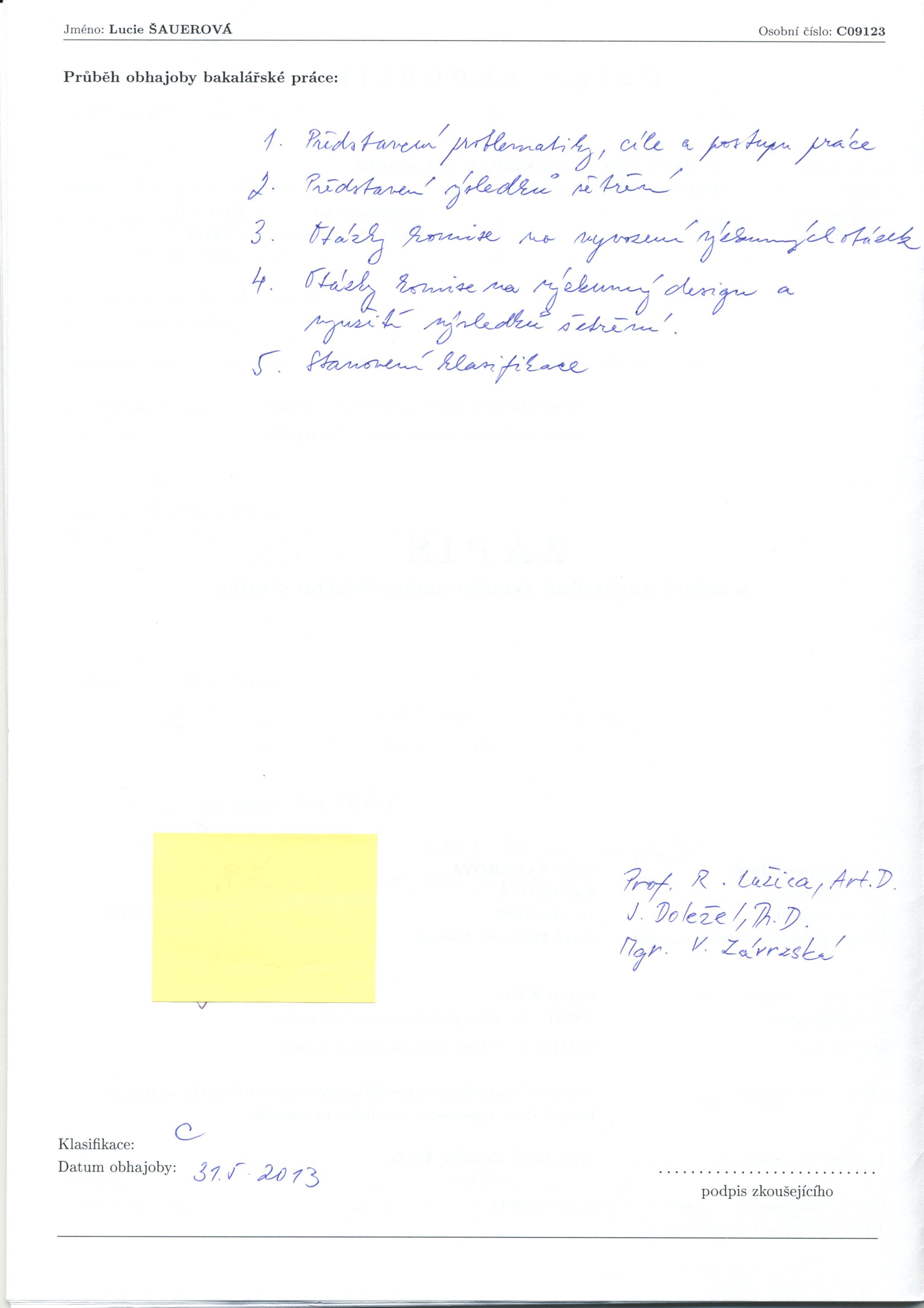 Kvalifikační práce Staženo Velikost datum zpřístupnění 00170010-747381836.pdf 40 669.9 KB 26.03.2013 Posudek Typ posudku 00170010-ved-677193526.doc Posudek vedoucího 00170010-opon-740918737.doc Posudek oponenta Průběh obhajoby datum zadání datum odevzdání datum obhajoby přidělená hodnocení typ hodnocení 00170010-prubeh-455534706.jpg 08.02.2011 26.03.2013 31.05.2013 2 Hodnocení známkou