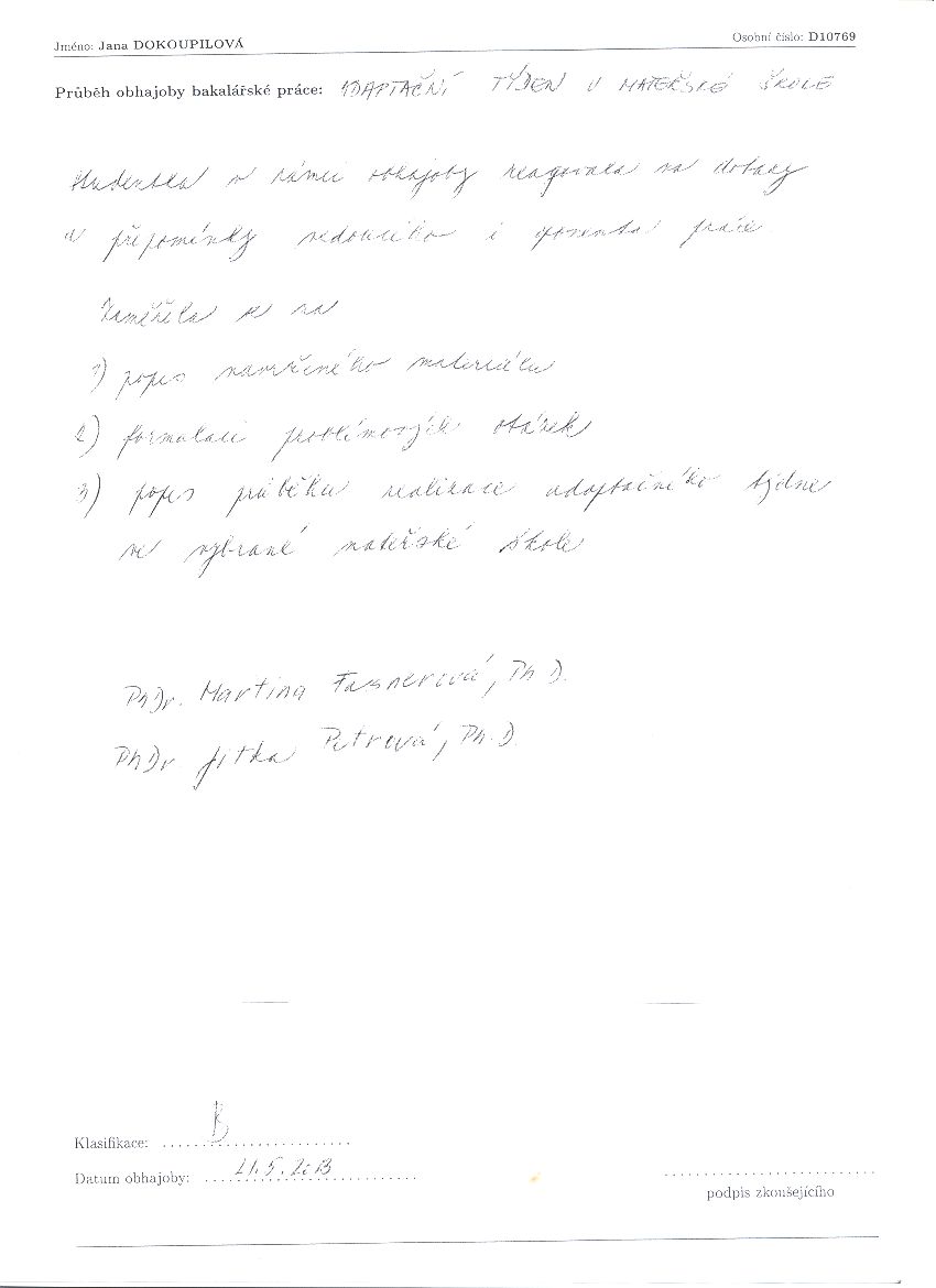 1. Údaje o názvuAdaptační týden v mateřské škole [rukopis] / Jana Dokoupilová