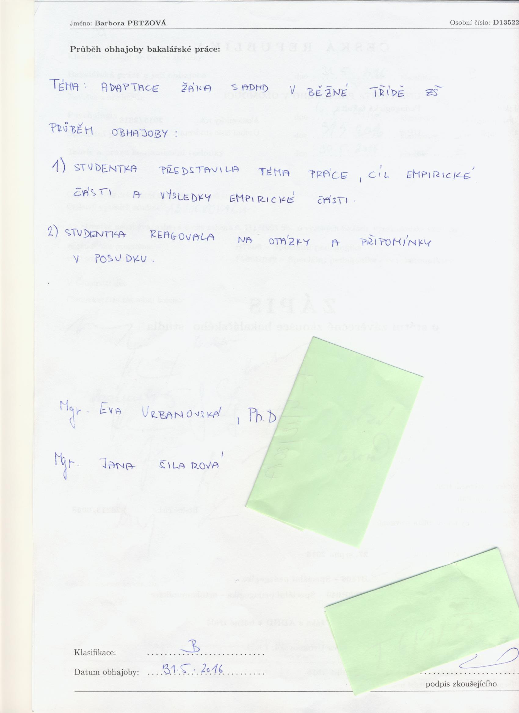 1. Údaje o názvuAdaptace žáka s ADHD v běžné třídě ZŠ [rukopis] / Barbora Petzová