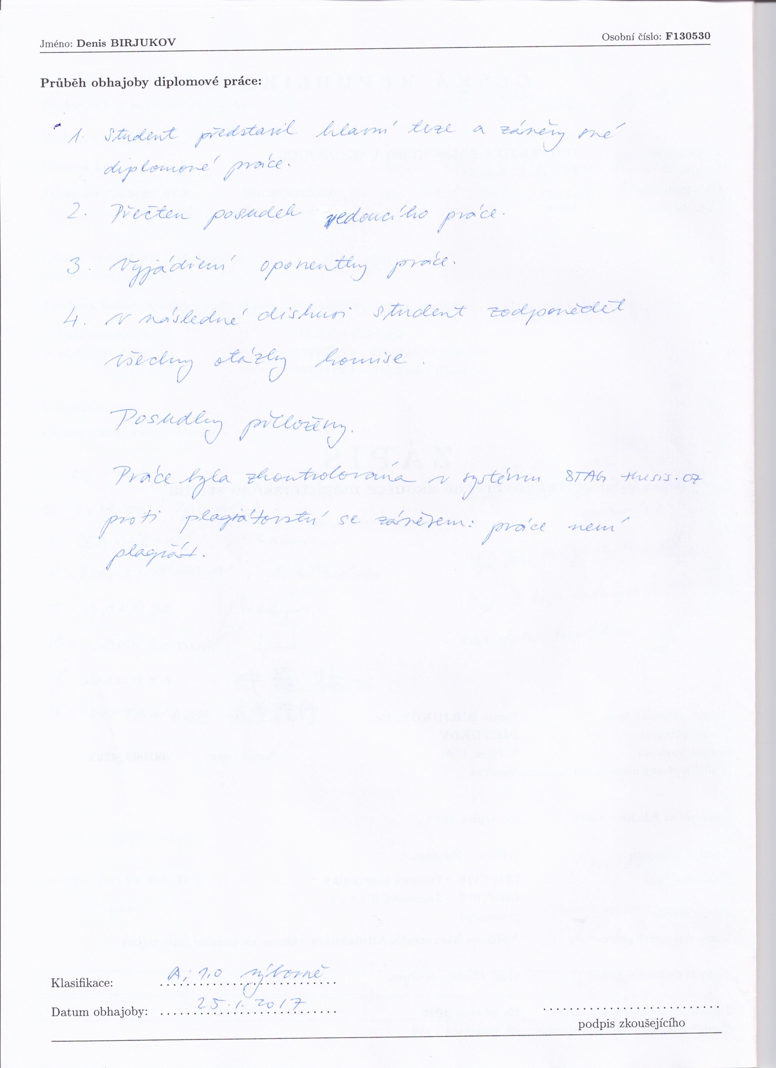 Kvalifikační práce Staženo Velikost datum zpřístupnění 00203641-640022577.pdf 76 3.1 MB 12.12.2016 Posudek Typ posudku 00203641-ved-390406261.docx Posudek vedoucího 00203641-opon-508334097.docx Posudek oponenta Průběh obhajoby datum zadání datum odevzdání datum obhajoby přidělená hodnocení typ hodnocení 00203641-prubeh-754484538.jpg 26.03.2015 12.12.2016 25.01.2017 1 Hodnocení známkou