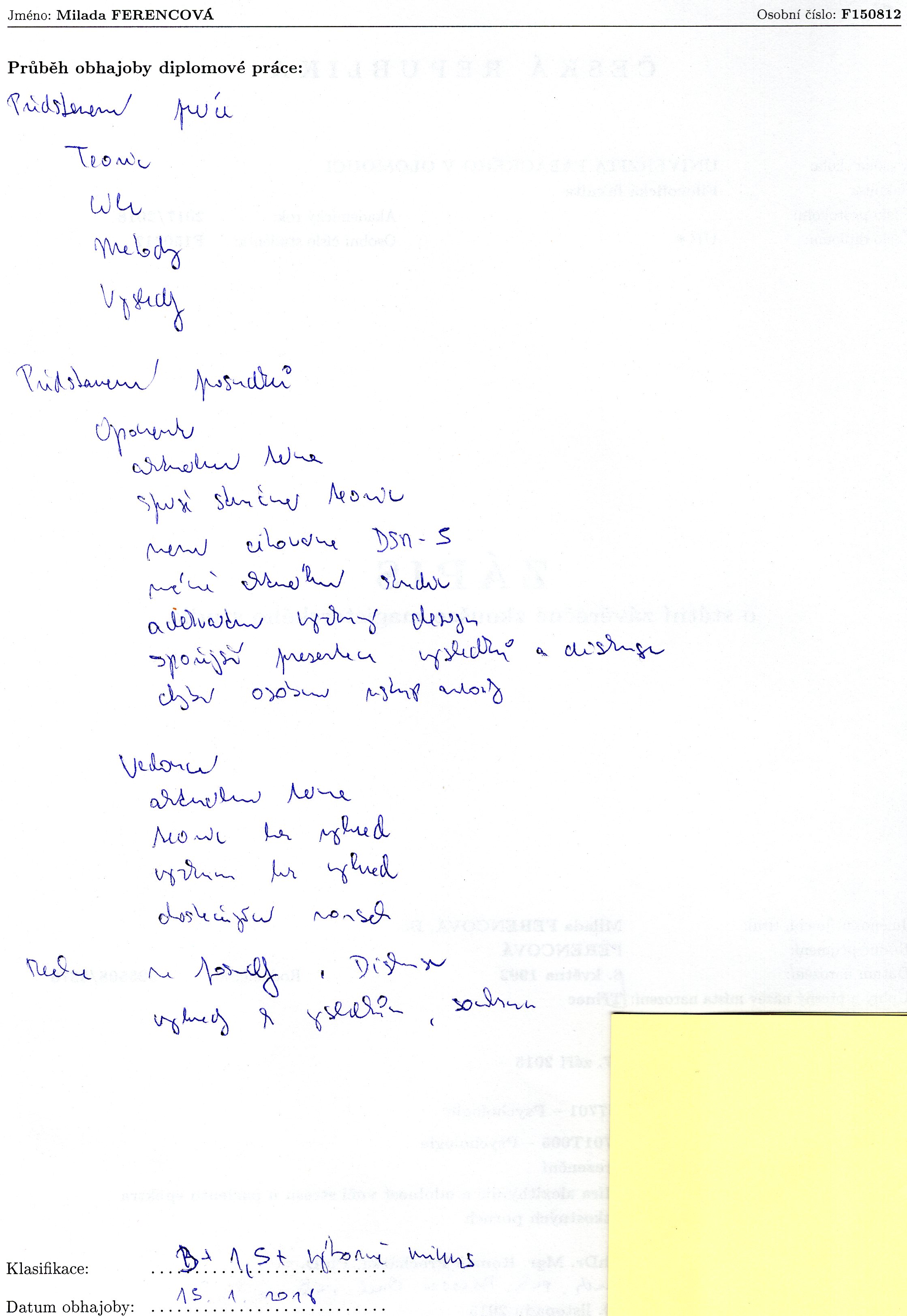 Kvalifikační práce Staženo Velikost datum zpřístupnění 00214618-962605923.pdf 126 1.4 MB 28.11.2017 Posudek Typ posudku 00214618-ved-581697031.docx Posudek vedoucího 00214618-opon-668294669.docx Posudek oponenta Průběh obhajoby datum zadání datum odevzdání datum obhajoby přidělená hodnocení typ hodnocení 00214618-prubeh-928506068.jpg 19.11.2015 28.11.2017 15.01.2018 1 Hodnocení známkou