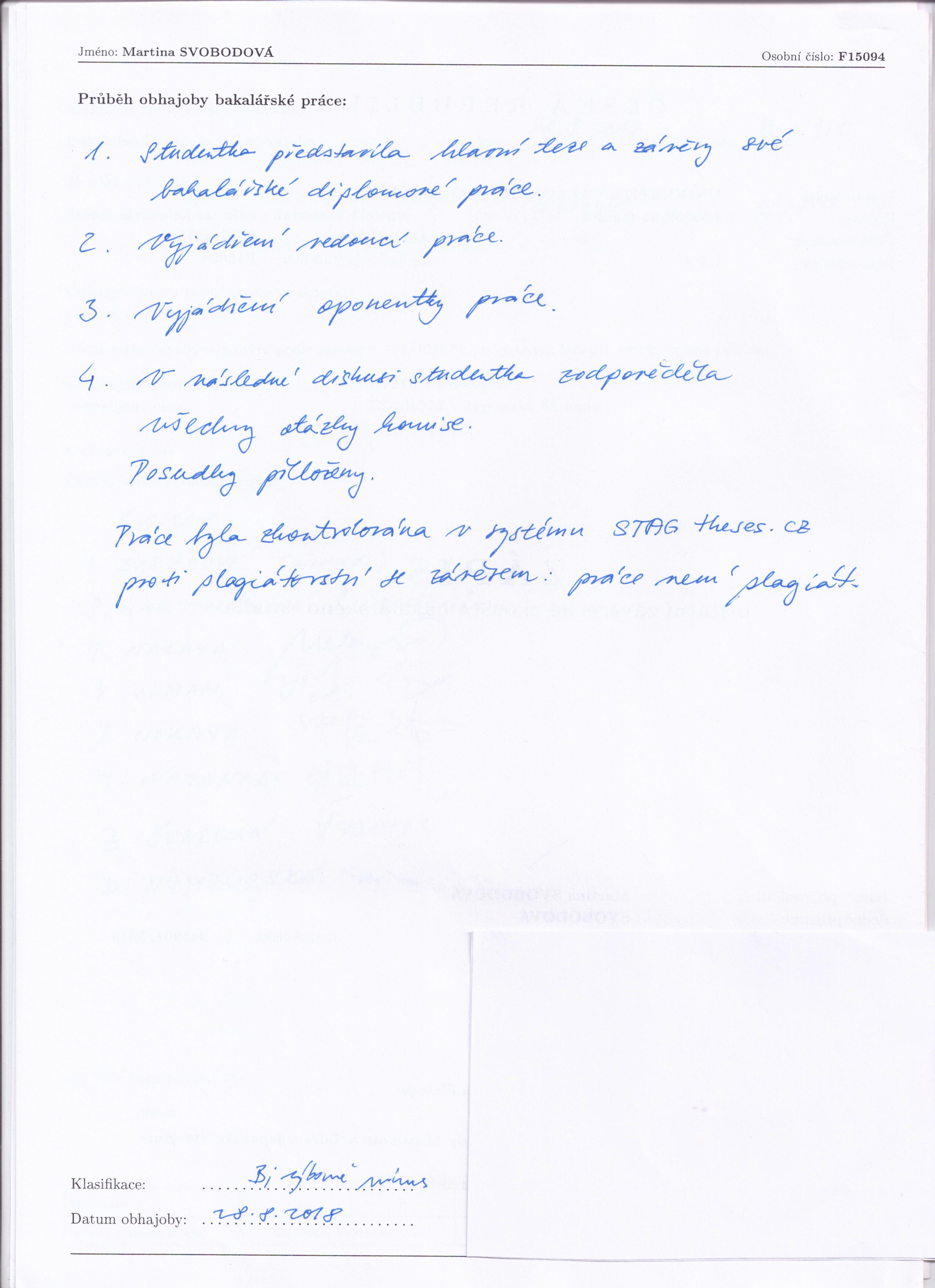 Kvalifikační práce Staženo Velikost datum zpřístupnění 00218402-144499932.pdf 23 364.2 KB 21.06.2018 Posudek Typ posudku 00218402-ved-560122128.docx Posudek vedoucího 00218402-opon-978373063.pdf Posudek oponenta Průběh obhajoby datum zadání datum odevzdání datum obhajoby přidělená hodnocení typ hodnocení 00218402-prubeh-321019616.jpg 09.05.2016 21.06.2018 28.08.2018 1 Hodnocení známkou