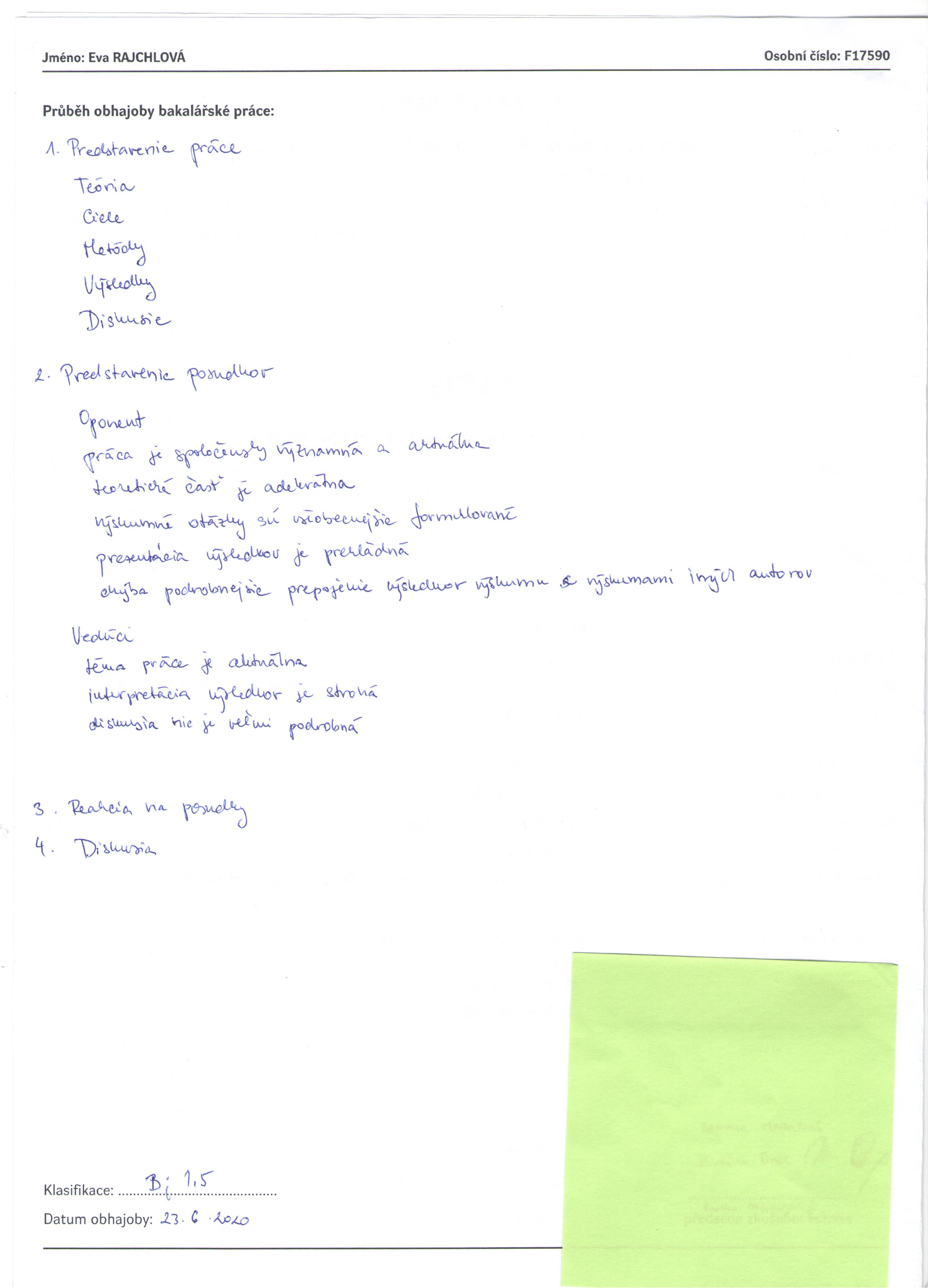 Kvalifikační práce Staženo Velikost datum zpřístupnění 00237943-386054650.pdf 69 721.7 KB 20.03.2020 Posudek Typ posudku 00237943-ved-392248617.docx Posudek vedoucího 00237943-opon-569189347.docx Posudek oponenta Průběh obhajoby datum zadání datum odevzdání datum obhajoby přidělená hodnocení typ hodnocení 00237943-prubeh-357813252.jpg 23.10.2018 20.03.2020 23.06.2020 1 Hodnocení známkou