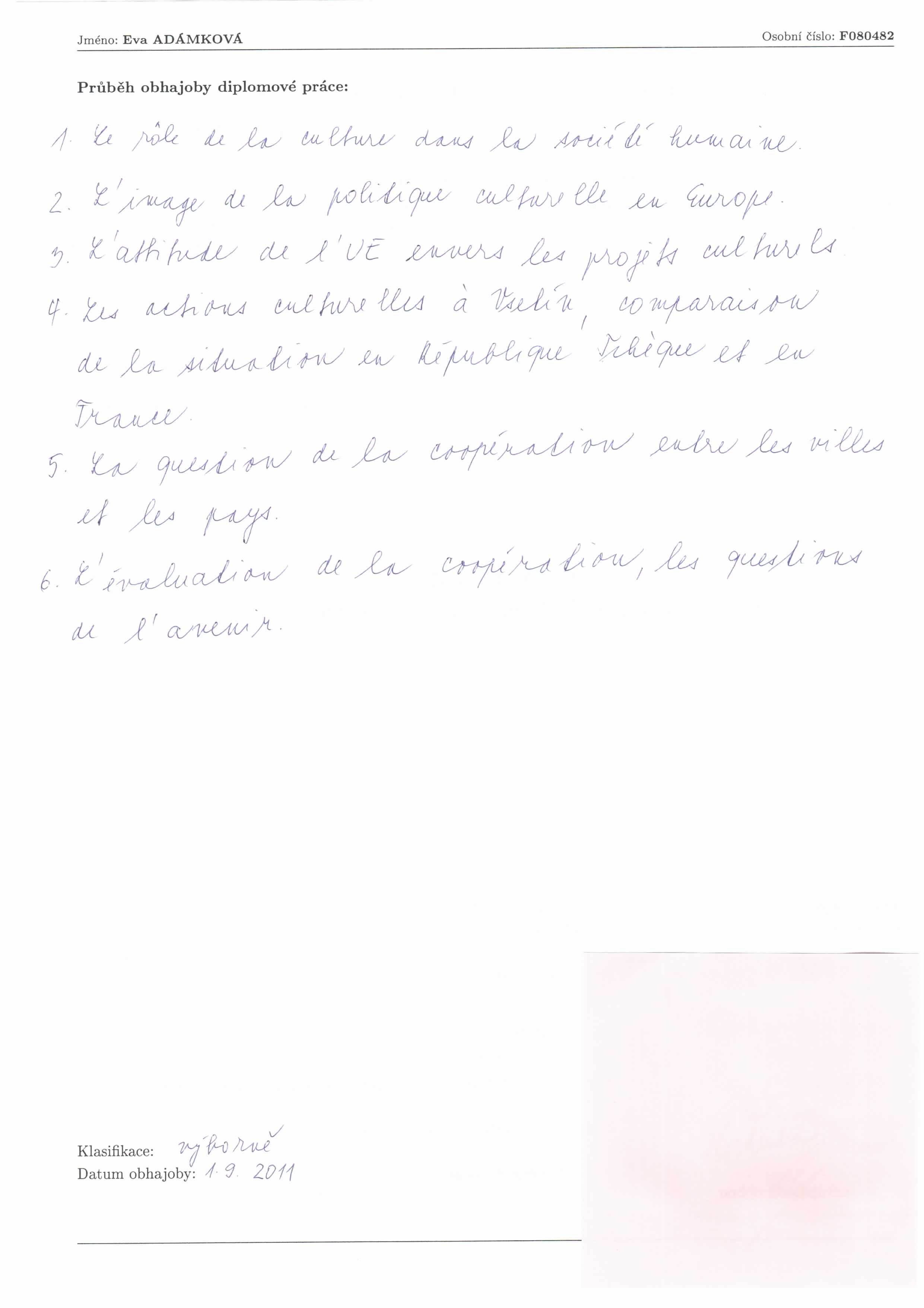 Kvalifikační práce Staženo Velikost datum zpřístupnění 00097734-574142792.pdf 61 927.1 KB 20.06.2011 Posudek Typ posudku 00097734-ved-100394698.doc Posudek vedoucího 00097734-opon-141369511.doc Posudek oponenta Průběh obhajoby datum zadání datum odevzdání datum obhajoby přidělená hodnocení typ hodnocení 00097734-prubeh-261134487.jpg 27.05.2009 20.06.2011 01.09.2011 1 Hodnocení známkou