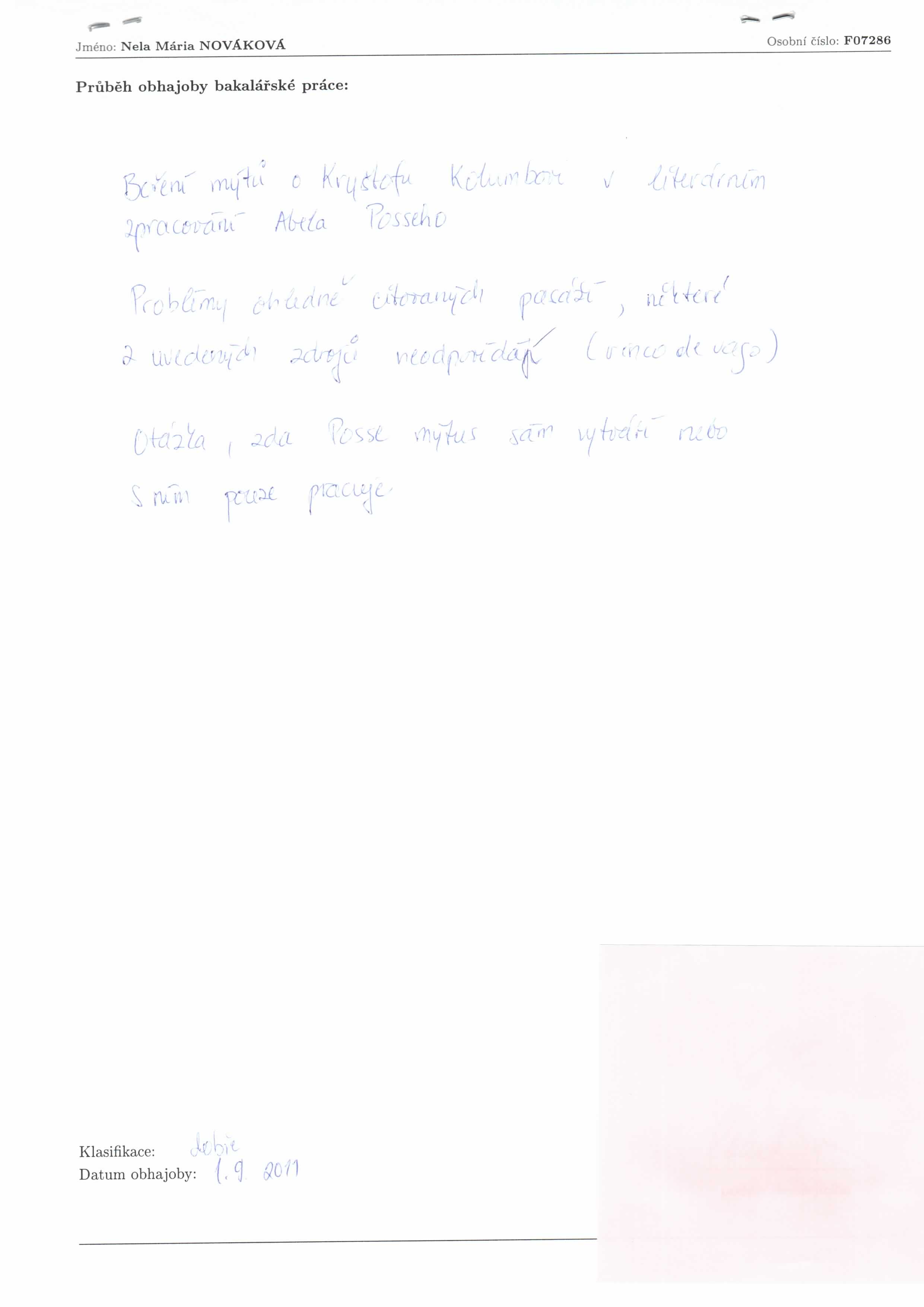 Údaje o názvu Cristóbal Colón, La destrucción de los mitos: El descubrimiento de América en el punto de vista de Abel Posse [rukopis] / Nela Mária Nováková Další variantní názvy Kryštof Kolumbus, boření mýtů: dobytí Ameriky z pohledu Abela Posseho Osobní jméno Nováková, Nela Mária (autor diplomové práce nebo disertace) Překl.náz Christopher Columbus, the destruction of the myth: the discovery of America from Abel Posse´s point of view Vyd.údaje 2011 Fyz.popis 41 s. (85 832 znaků), 2 s.obr. : il. + CD ROM Poznámka Oponent Daniel Esparza Ved. práce Daniel Nemrava Dal.odpovědnost Esparza, Daniel (oponent) Nemrava, Daniel, 1975- (vedoucí diplomové práce nebo disertace) Dal.odpovědnost Univerzita Palackého. Katedra romanistiky. Španělská sekce (udelovatel akademické hodnosti) Klíč.slova Abel Posse * historie * fikce * Latinskoamerický nový historický román * objevení * Kryštof Kolumbus * Abel Posse * history * fiction * Latin-American new history novel * discovery * Christopher Columbus Forma, žánr bakalářské práce bachelor's theses MDT (043)378.22 Země vyd. Česko Jazyk dok. španělština Druh dok. PUBLIKAČNÍ ČINNOST Titul Bc. Studijní program Bakalářský Studijní program Filologie Studijní obor Španělská filologie