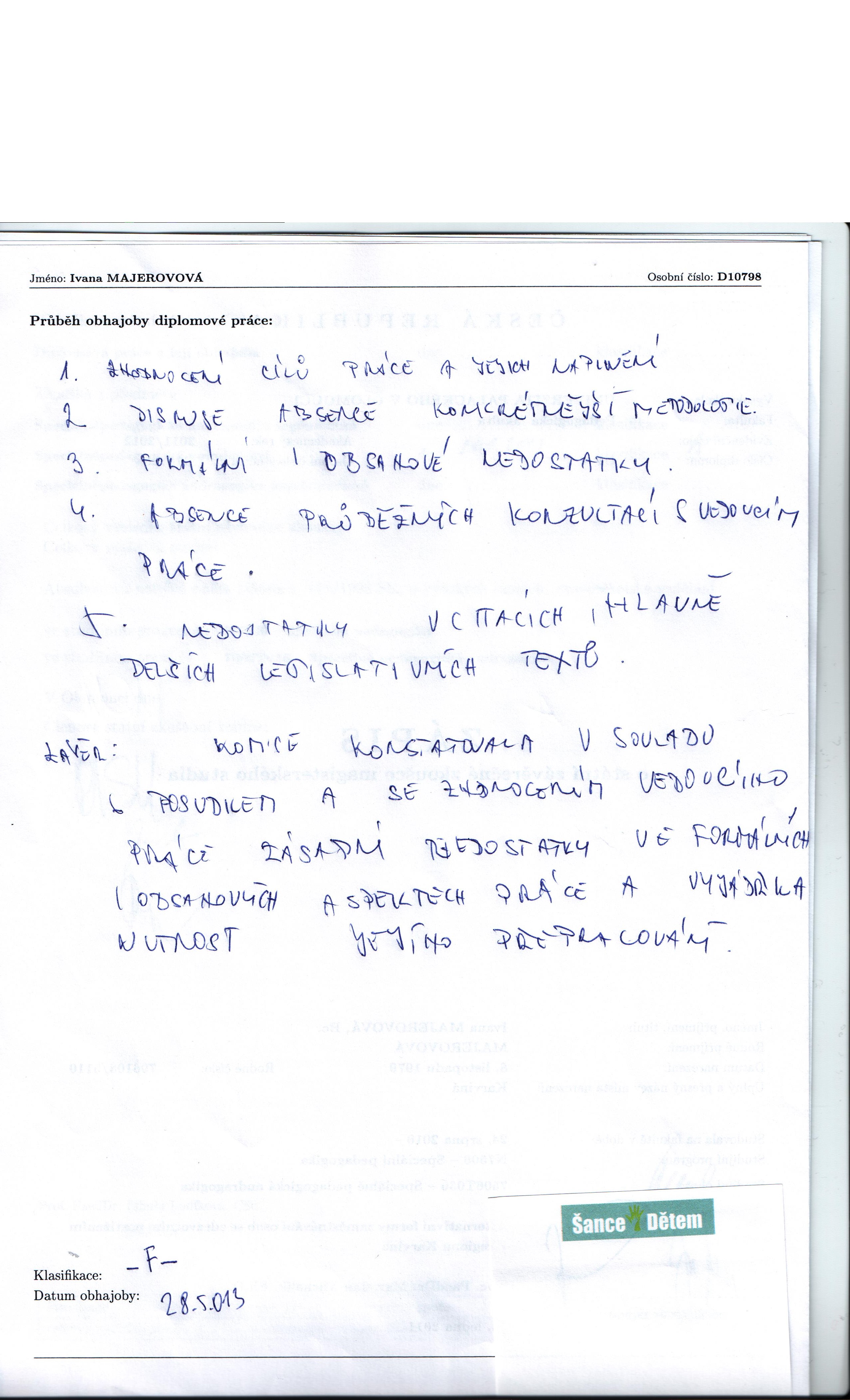 Kvalifikační práce Staženo Velikost datum zpřístupnění 00150251-740887354.pdf 64 1.3 MB 12.04.2013 Posudek Typ posudku 00150251-ved-194537068.docx Posudek vedoucího 00150251-opon-738559406.docx Posudek oponenta Průběh obhajoby datum zadání datum odevzdání datum obhajoby přidělená hodnocení typ hodnocení 00150251-prubeh-207038246.jpg 24.01.2011 12.04.2013 28.05.2013 4 Hodnocení známkou
