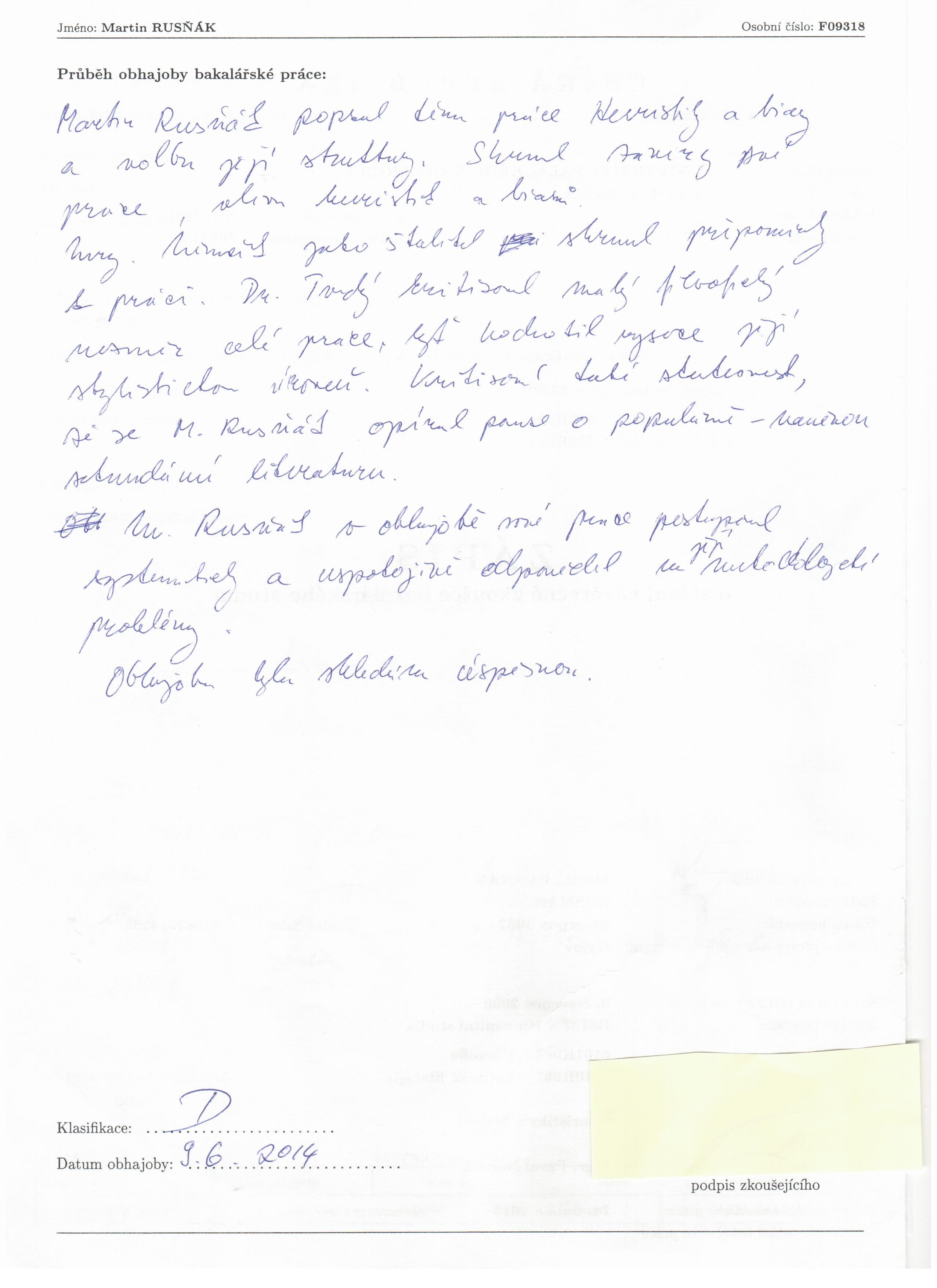 Kvalifikační práce Staženo Velikost datum zpřístupnění 00184080-682211318.pdf 31 258.5 KB 07.05.2014 Posudek Typ posudku 00184080-ved-306394719.pdf Posudek vedoucího 00184080-opon-582855351.pdf Posudek oponenta Průběh obhajoby datum zadání datum odevzdání datum obhajoby přidělená hodnocení typ hodnocení 00184080-prubeh-168571452.jpg 24.04.2013 07.05.2014 09.06.2014 2 Hodnocení známkou