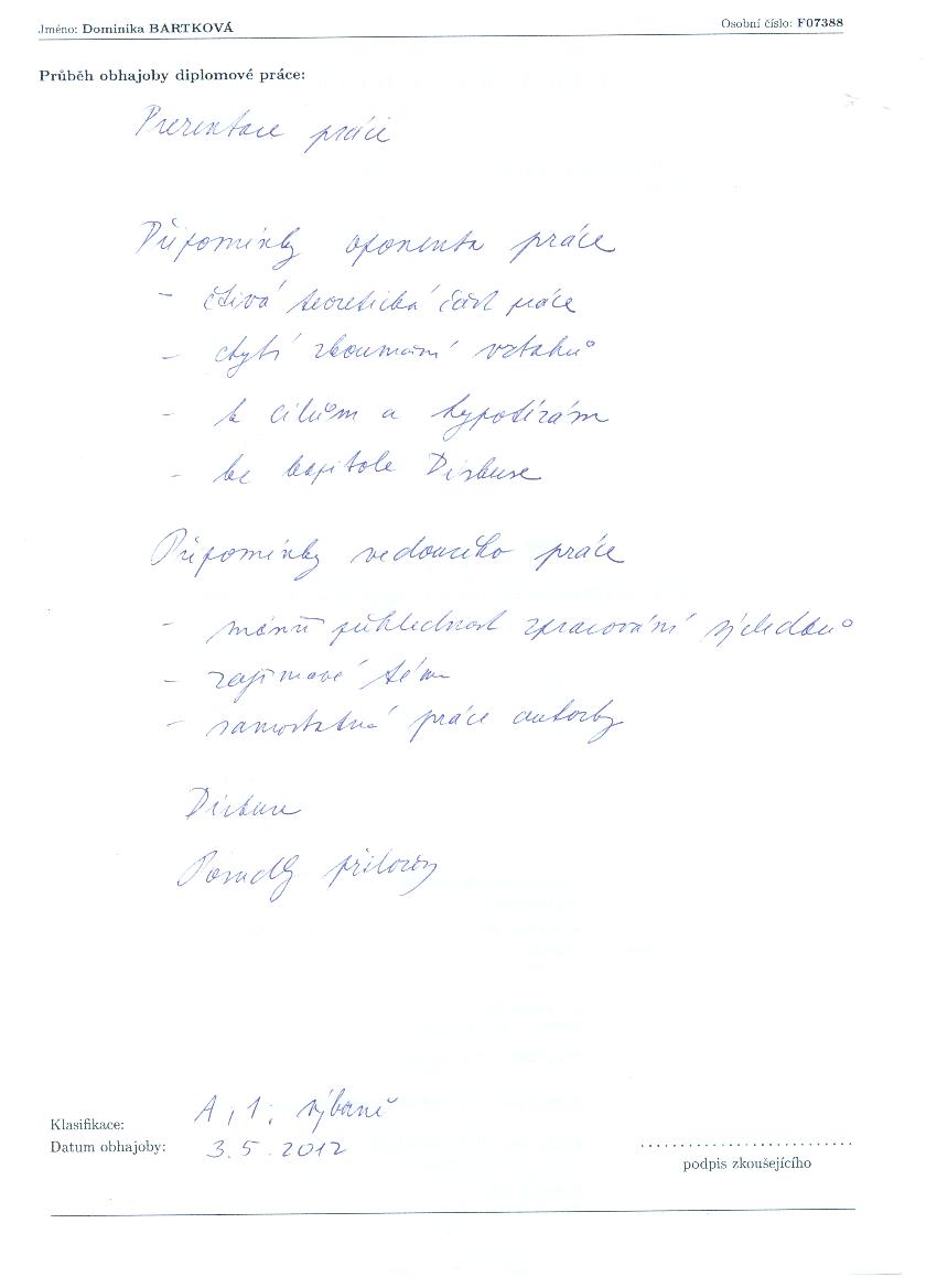 Kvalifikační práce Staženo Velikost datum zpřístupnění 00158905-893080662.pdf 116 2 MB 03.04.2012 Posudek Typ posudku 00158905-ved-274731571.doc Posudek vedoucího 00158905-opon-658639502.doc Posudek oponenta Průběh obhajoby datum zadání datum odevzdání datum obhajoby přidělená hodnocení typ hodnocení 00158905-prubeh-325639379.jpg 05.04.2011 03.04.2012 03.05.2012 1 Hodnocení známkou