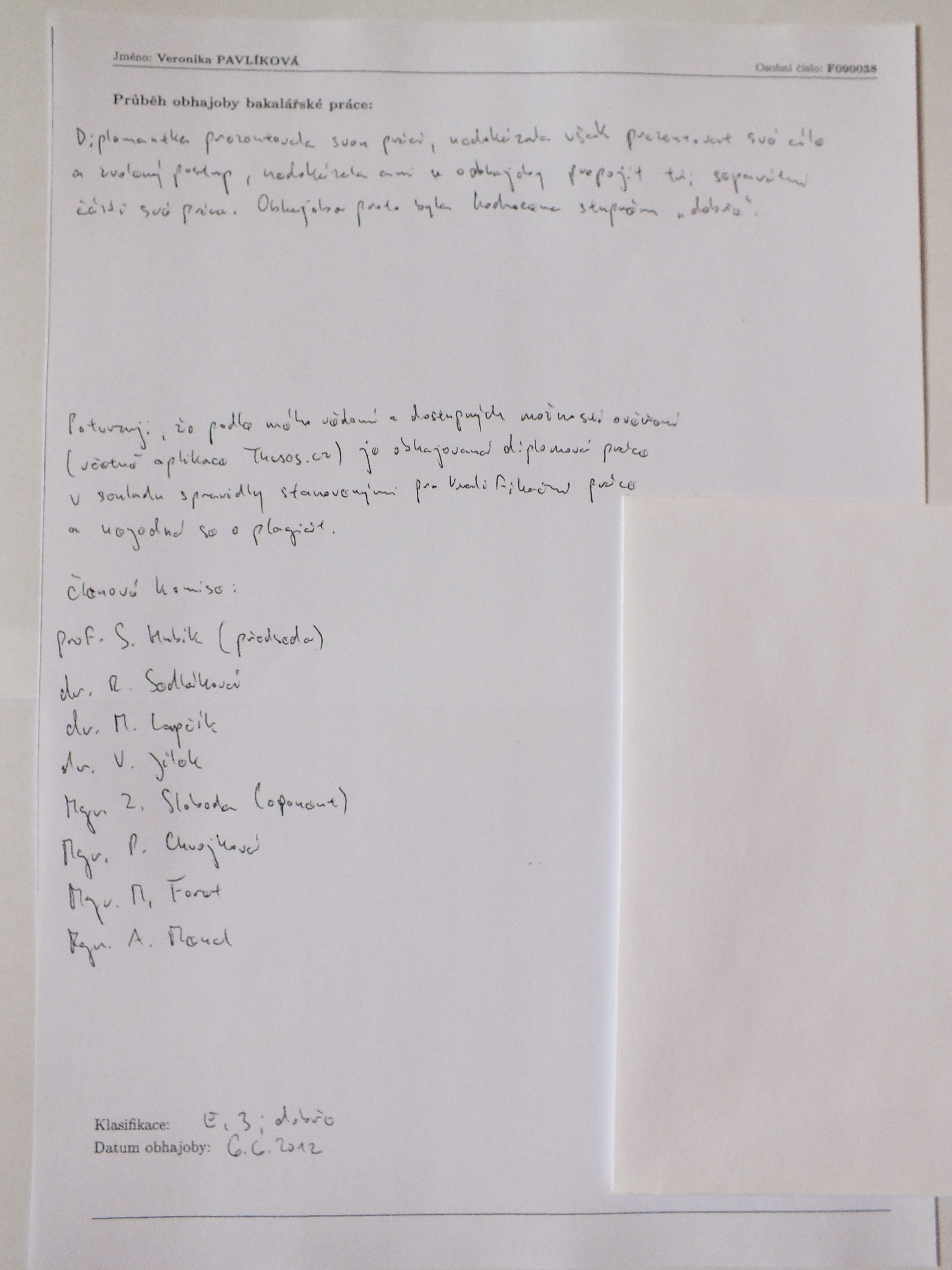Personal name Pavlíková, Veronika (dissertant)