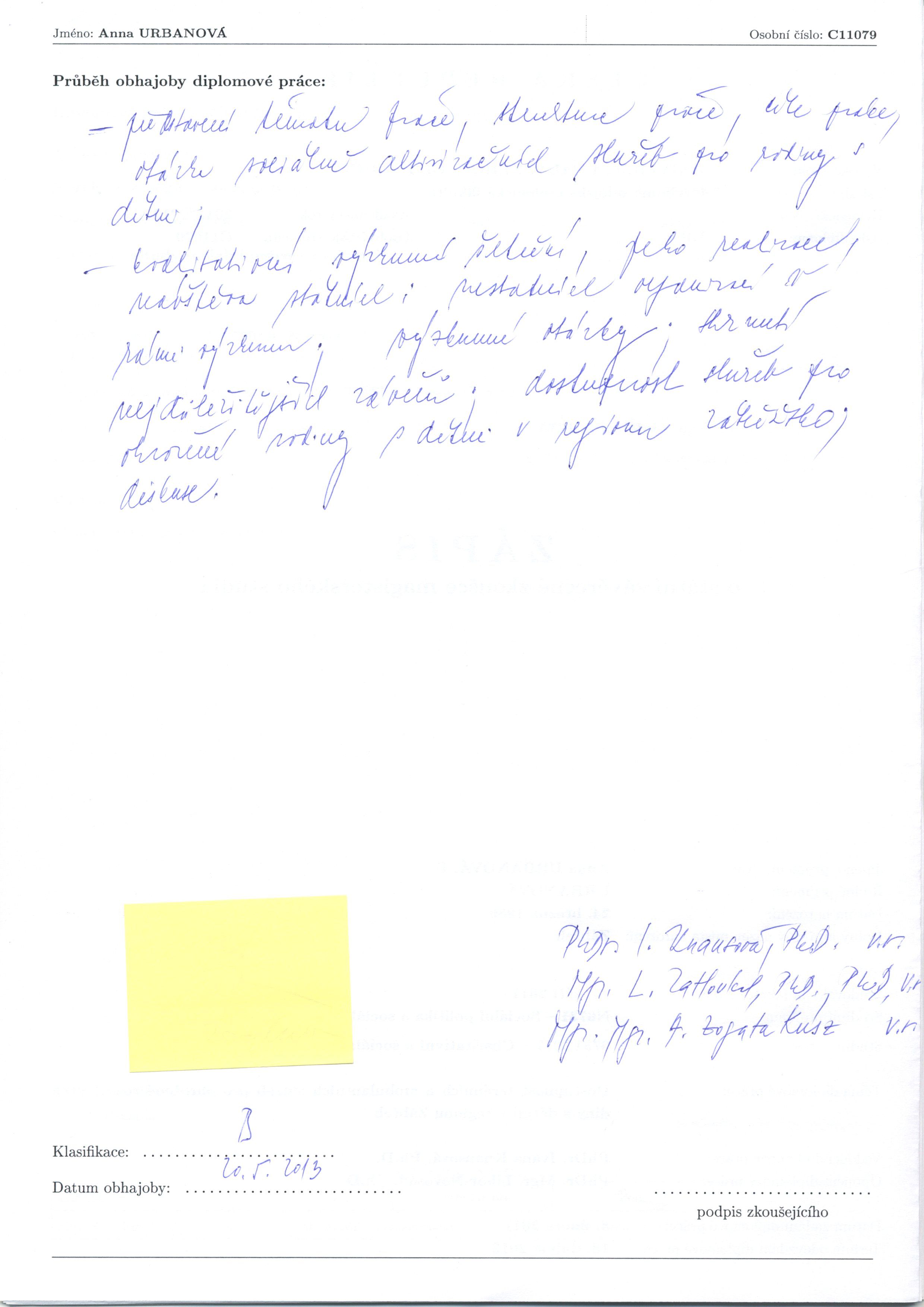 Kvalifikační práce Downloaded Size datum zpřístupnění 00176394-666625955.pdf 55 1.1 MB 18.04.2013 Posudek Typ posudku 00176394-ved-539481552.docx Posudek vedoucího 00176394-opon-253052879.docx Posudek oponenta Průběh obhajoby datum zadání datum odevzdání datum obhajoby přidělená hodnocení typ hodnocení 00176394-prubeh-810889293.jpg 08.02.2011 18.04.2013 20.05.2013 1 Hodnocení známkou