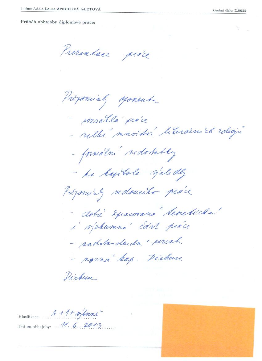Kvalifikační práce Downloaded Size datum zpřístupnění 00180096-336603263.pdf 40 2.6 MB 16.04.2013 Posudek Typ posudku 00180096-ved-589905548.docx Posudek vedoucího 00180096-opon-190284627.pdf Posudek oponenta Průběh obhajoby datum zadání datum odevzdání datum obhajoby přidělená hodnocení typ hodnocení 00180096-prubeh-986112344.jpg 30.11.2012 16.04.2013 11.06.2013 1 Hodnocení známkou