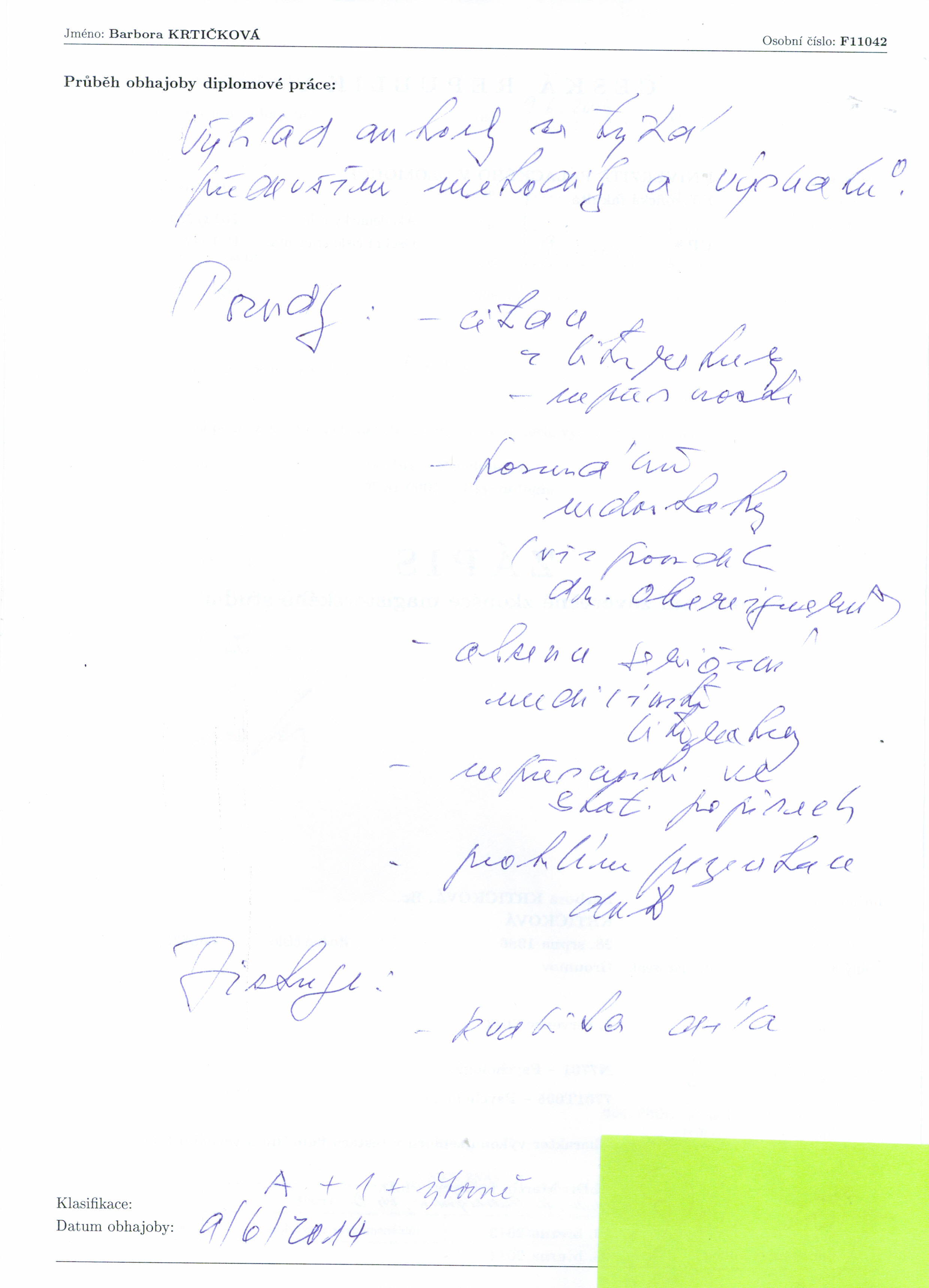 Kvalifikační práce Downloaded Size datum zpřístupnění 00183077-596721767.pdf 39 1.8 MB 31.03.2014 Posudek Typ posudku 00183077-ved-921691986.doc Posudek vedoucího 00183077-opon-737114827.doc Posudek oponenta Průběh obhajoby datum zadání datum odevzdání datum obhajoby přidělená hodnocení typ hodnocení 00183077-prubeh-115478514.jpg 13.03.2013 31.03.2014 09.06.2014 1 Hodnocení známkou