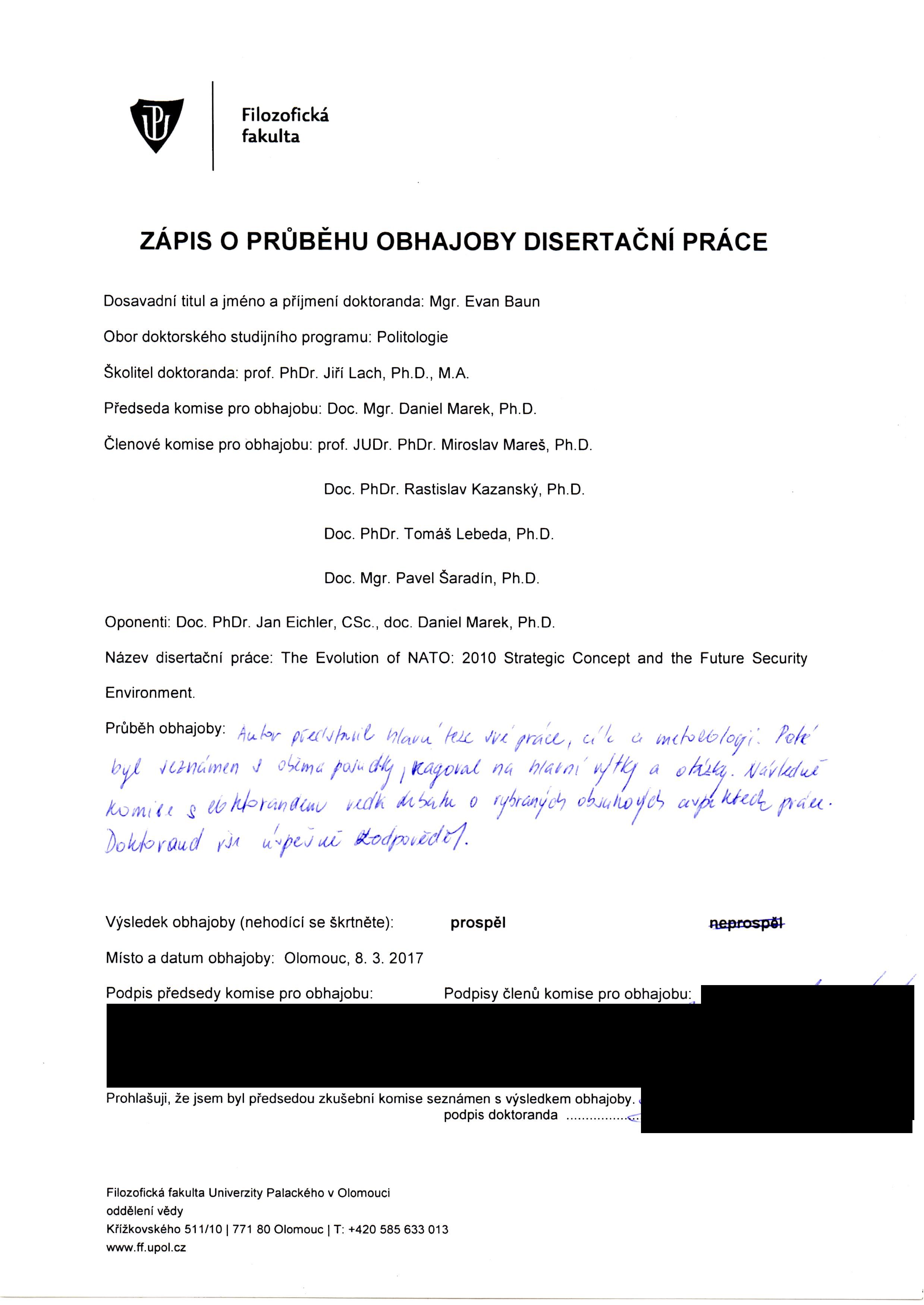 Title statement The Evolution of NATO: 2010 Strategie Concept and the Future Security Environment [rukopis] / Evan Baun Additional Variant Titles The Evolution of NATO: 2010 Strategie Concept and the Future Security Environment Personal name Baun, Evan (dissertant) Translated title The Evolution of NATO: 2010 Strategie Concept and the Future Security Environment Issue data 2016 Note Ved. práce Jiří Lach Another responsib. Lach, Jiří (školitel) Another responsib. Univerzita Palackého. Katedra politologie a evropských studií (degree grantor) Keywords NATO * Future Security Environment * strategická koncepce * státní konflikt * zbraně hromadného ničení * kybernetické útoky * důležité infrastruktury * terorismus * komunikace * obchod * energetická bezpečnost * přírodní zdroje * změna klimatu * zhroucené státy * ekonomické konflikty * NATO * Future Security Environment * Strategic Concept * state conflict * weapons of mass destruction/effect * cyber attacks * critical infrastructure * terrorism * communications * trade * energy security * natural resources * climate change * failed states * economic conflict Form, Genre disertace dissertations UDC (043.3) Country Česko Language angličtina Document kind PUBLIKAČNÍ ČINNOST Title Ph.D. Degree program Doktorský Degree program Political Science Degreee discipline Political Science