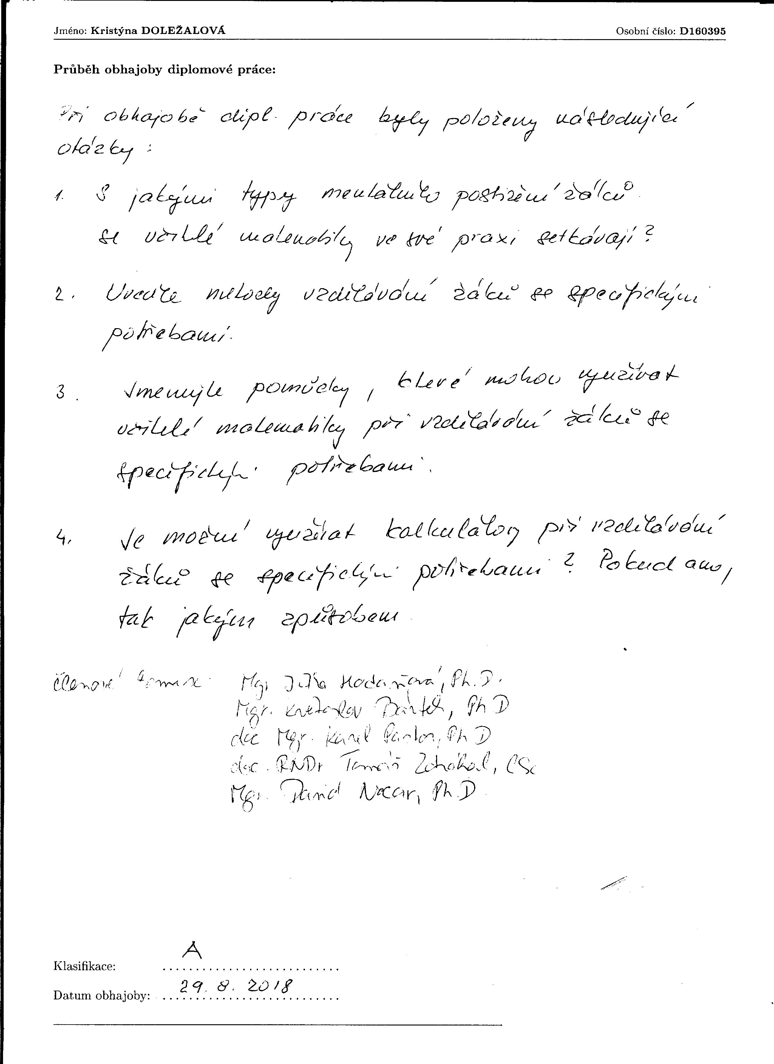 Title statement Kompenzační pomůcky v matematice [rukopis] / Kristýna Doležalová Additional Variant Titles Kompenzační pomůcky v matematice Personal name Doležalová, Kristýna (dissertant) Translated title Compensation aids in mathematics Issue data 2018 Phys.des. 67 stran : tab. + 1 CD ROM Note Ved. práce Jitka Hodaňová Oponent Miroslava Poláchová Another responsib. Hodaňová, Jitka (thesis advisor) Poláchová, Miroslava, (opponent) Another responsib. Univerzita Palackého. Katedra matematiky (degree grantor) Keywords Mentální postižení * mentální retardace * klasifikace mentální retardace * stupně mentální retardace * matematika * kompenzační pomůcky * didaktické pomůcky * Mental disability * mental retardation * classification of mental retardation * stage of mental retardation * maths * didactical aids * compensatory aids Form, Genre diplomové práce master's theses UDC (043)378.2 Country Česko Language čeština Document kind PUBLIKAČNÍ ČINNOST Title Mgr. Degree program Navazující Degree program Speciální pedagogika Degreee discipline Speciální pedagogika pro 2. stupeň základních škol a pro střední školy a učitelství matematiky pro 2. stupeň základních škol
