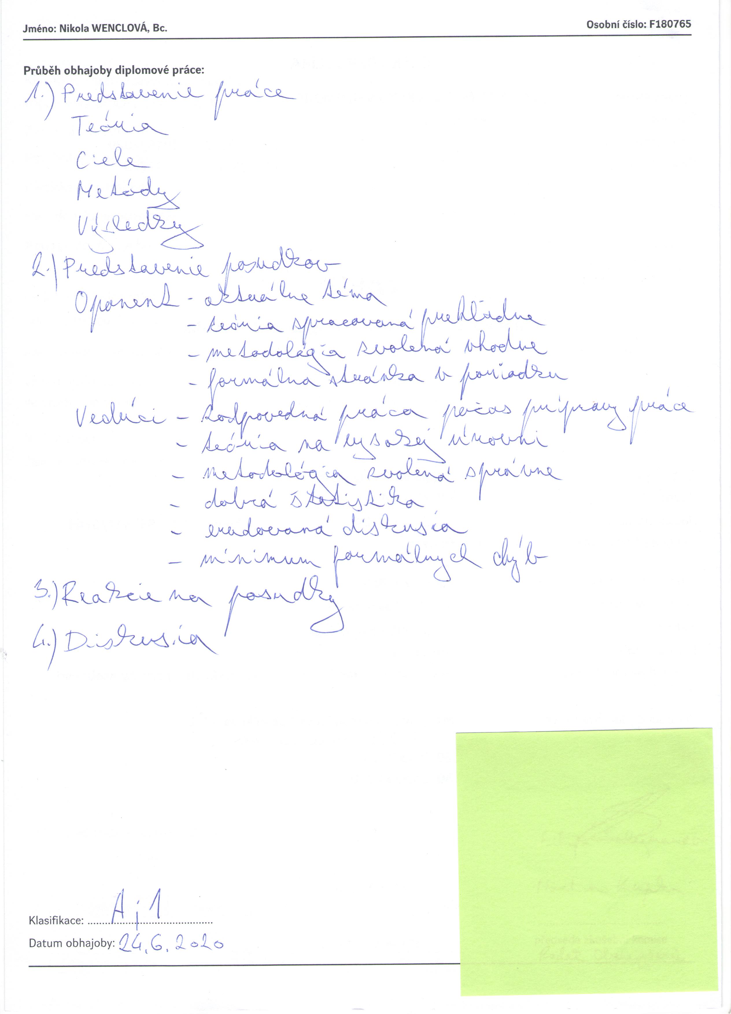 Kvalifikační práce Downloaded Size datum zpřístupnění 00235678-431998411.pdf 53 1.3 MB 30.03.2020 Posudek Typ posudku 00235678-ved-700469806.docx Posudek vedoucího 00235678-opon-893514997.docx Posudek oponenta Průběh obhajoby datum zadání datum odevzdání datum obhajoby přidělená hodnocení typ hodnocení 00235678-prubeh-638773096.jpg 29.10.2018 30.03.2020 24.06.2020 1 Hodnocení známkou