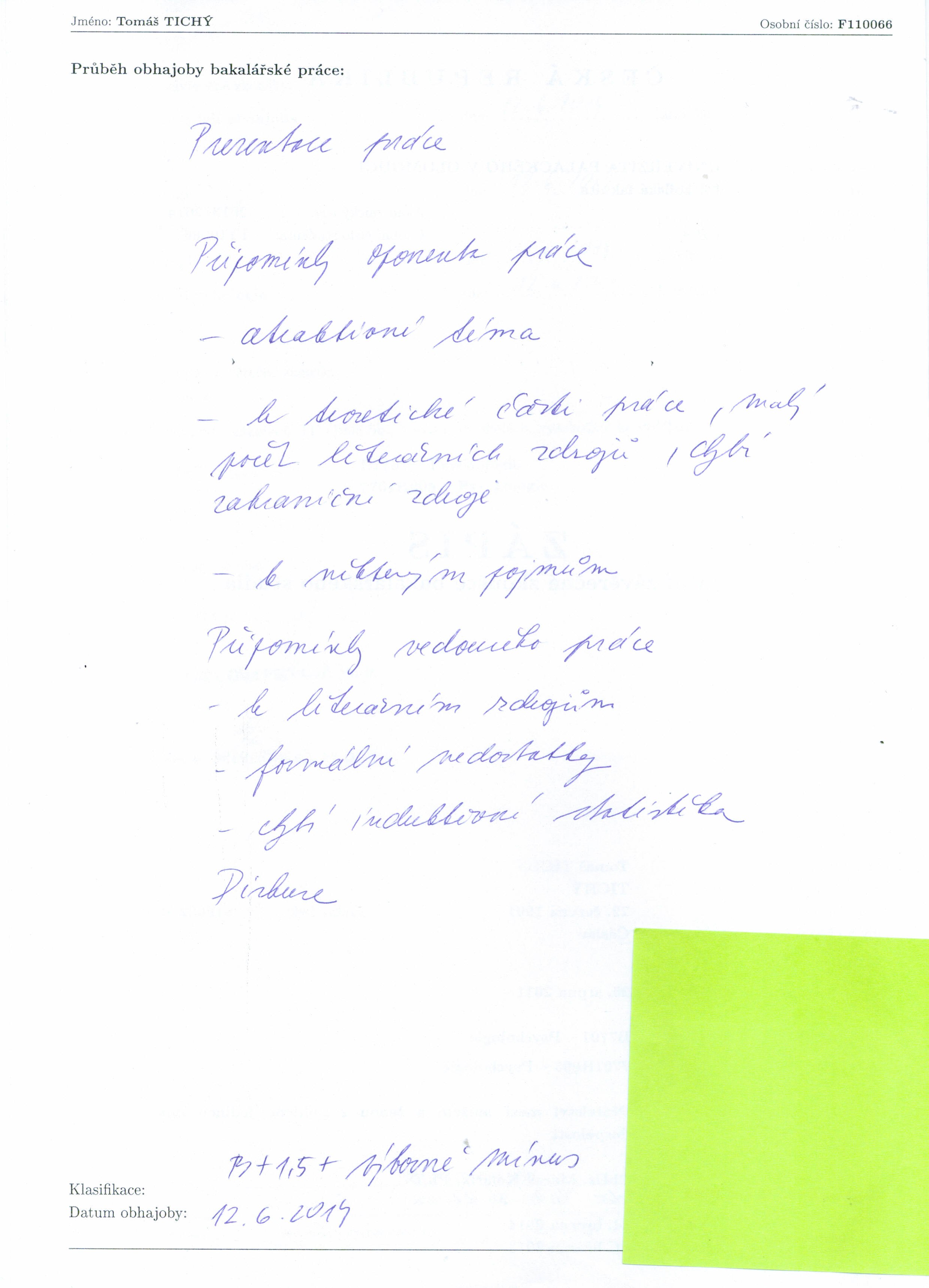 Kvalifikační práce Downloaded Size datum zpřístupnění 00190695-910438639.pdf 39 1 MB 31.03.2014 Posudek Typ posudku 00190695-ved-705742830.doc Posudek vedoucího 00190695-opon-498861498.doc Posudek oponenta Průběh obhajoby datum zadání datum odevzdání datum obhajoby přidělená hodnocení typ hodnocení 00190695-prubeh-482334633.jpg 24.03.2014 31.03.2014 12.06.2014 1 Hodnocení známkou
